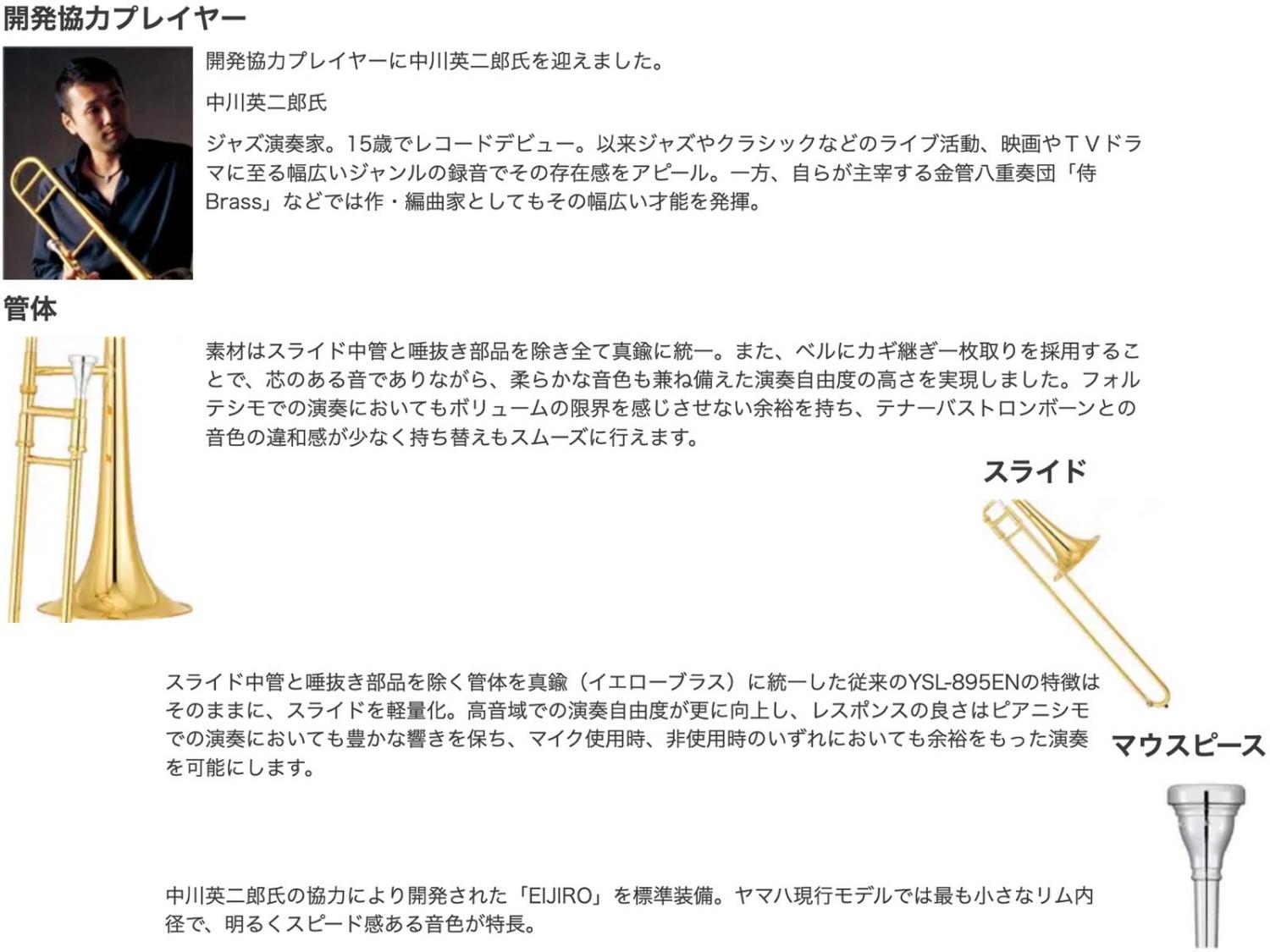 YAMAHA ヤマハ 5年保証サービス対象 YSL-895EN テナートロンボーン 中川英二郎 細管 カスタム Trombones セットE 以下対応不可 北海道 沖縄 離島 代引き