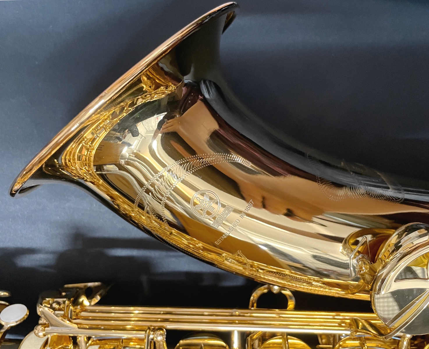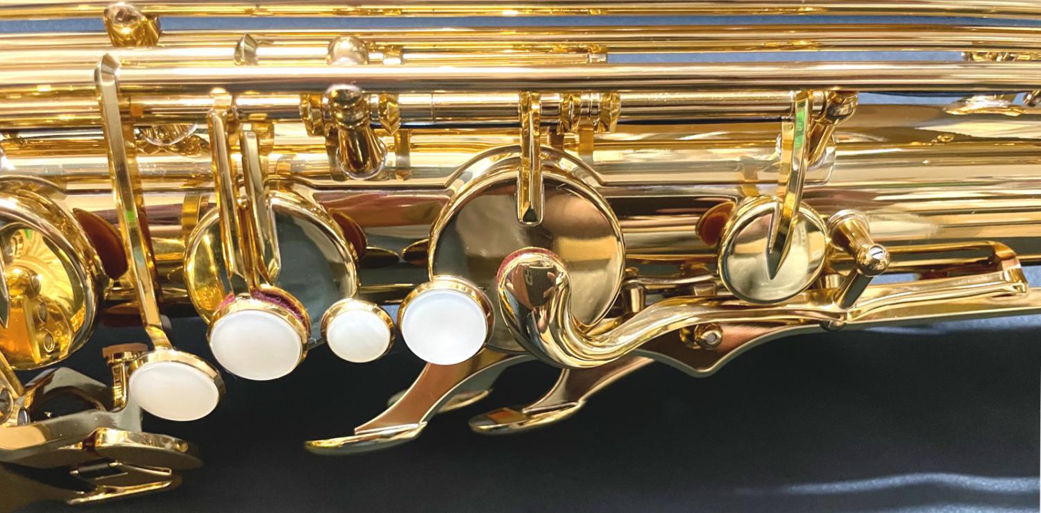 サックスはベルに彫刻があるかどうかも重要で彫刻があればより高級感があります。各モデルで彫刻は異なり 下位モデルYTS-480から彫刻が施されております。見た目で楽器のレベルが分かってしまうということですね...またカラー(素材/仕上げ)によっ て、音色が異なります。ゴールドはフォルテの音抜けがとても良く響きます。