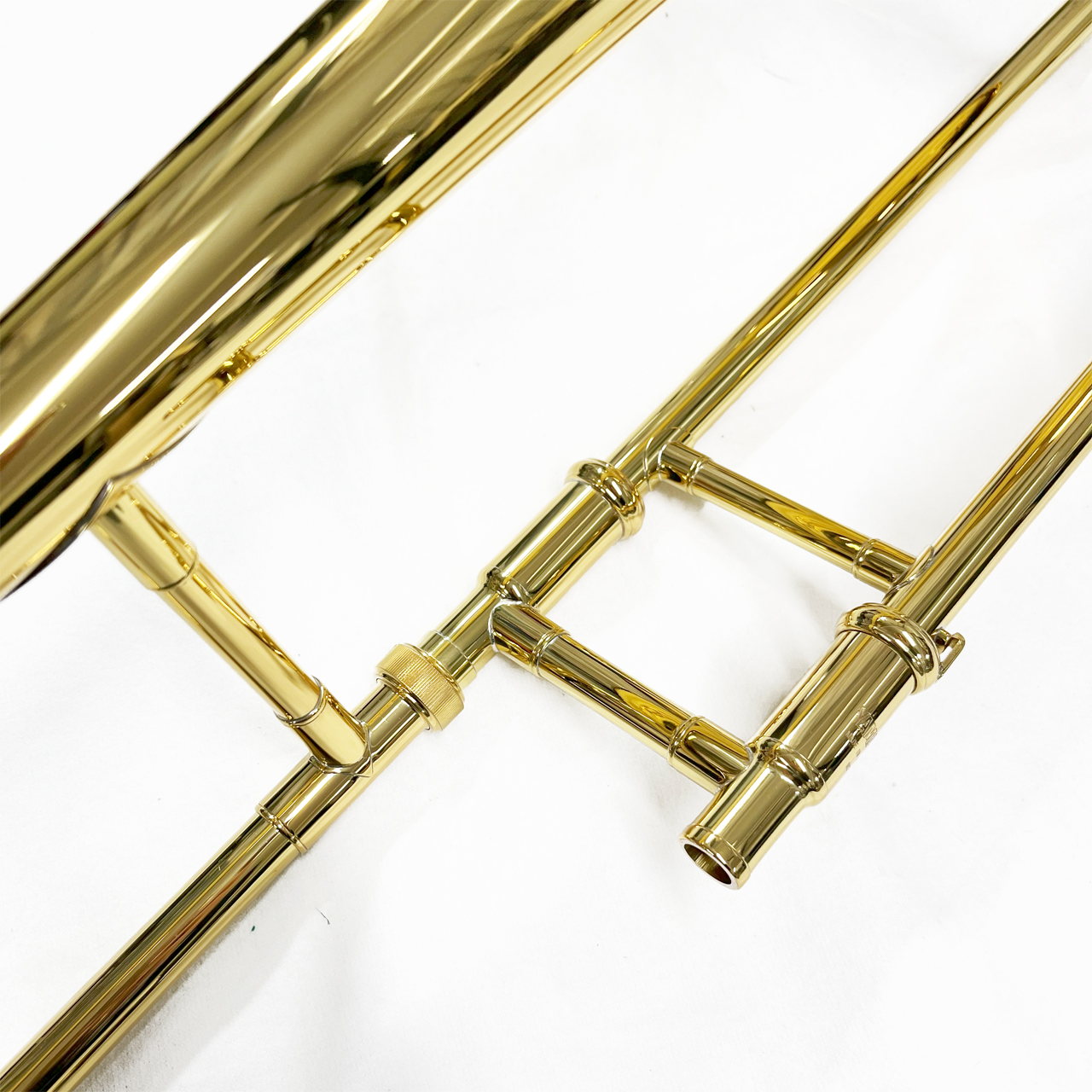 開発協力プレイヤーに中川英二郎氏を迎え制作されたモデルです。管体素材をスライド中管、唾抜き部品を覗き全てを真鍮に統一しています。それに加えベルを1枚取りのカギ継ぎにすることで芯のある音と柔らかな音色を兼ね備えた演奏自由度の高さを実現したモデルと言われています。発売後一度マイナーテェンジを行っておりスライドを軽量化しています。軽量化したことによって高音域での演奏の自由度がさらに向上したようです。ジャズを演奏する際に欲しいレスポンスの良さ、また芯のあるダークな音色が特徴的です。テナートロンボーンというシンプルな構造だからこそテナーバスモデル(YSL-823G/823GD)に比べて洋白が使う箇所も少なくできて統一感のある見た目もかっこいいかと思います。ジャズやポップスを中心に演奏される方には特にお勧めしたいモデルです。軽量化されている点から見て始めたての方などにもおすすめです。