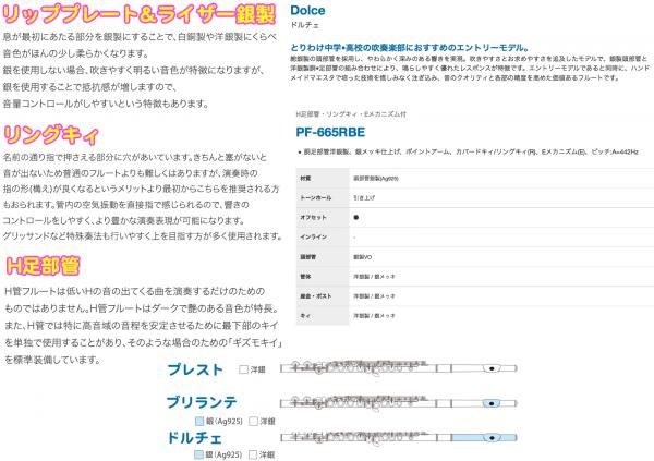 PF-665RBE フルート H足部管 Eメカニズム Dolce PF665RBE flute silver 総銀製 頭部管 TPH-6J リングキー Open-Hole