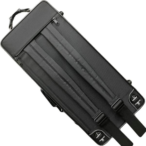 ■セミハードケース...カラーはブラック。手さげ、リュックタイプ、さらに肩掛けショルダーと3種類の持ち方ができ、サイドには譜面等も収納可能な機能性を高めたケースです。
