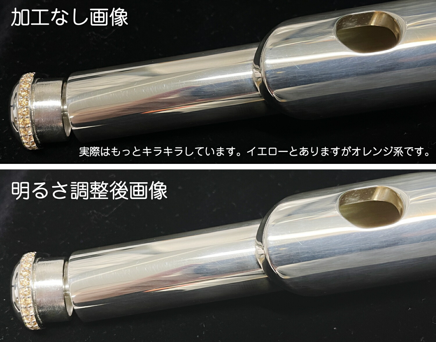 安いフルートは主に洋白(白銅)を素材としており、上位モデルにいくほど銀を使用している部分が多くなります。