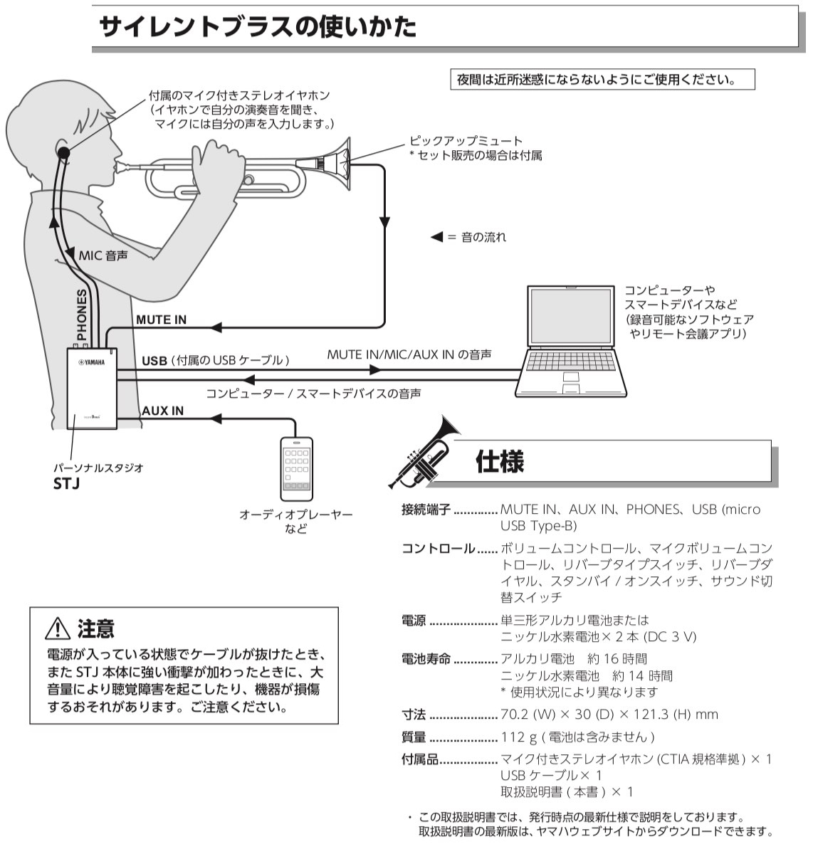 ■ヤマハ サイレントブラス ミュート SB7J...トランペットの大音量を囁き声程度に弱音するだけでなくイヤフォンでトランペットのサウンドをきくことができる優れもの。