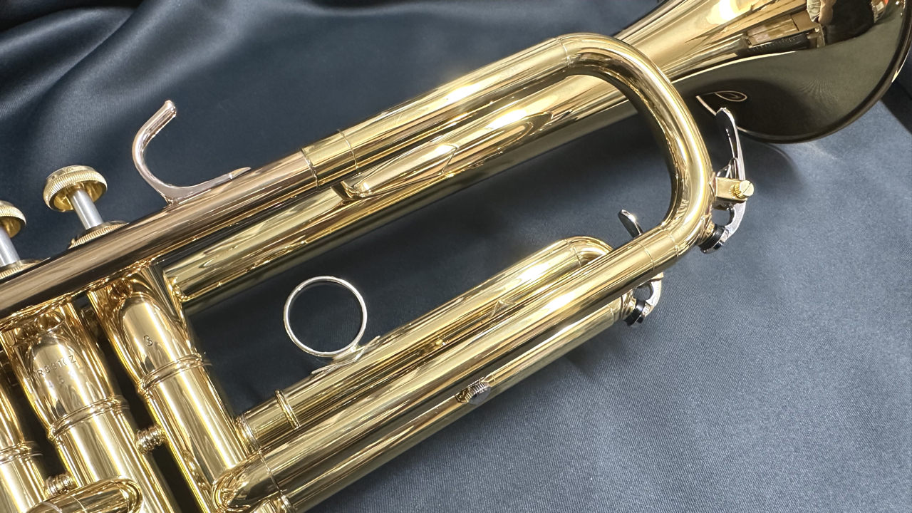 ぱっと見はだいたい金か銀ですが、塗装の違いで濃いゴールド、薄いゴールドの違いがあったりもします。塗装の違いで音色や吹奏感にも違いがでてきます。YTR-8310Zはゴールドラッカー仕上げです。