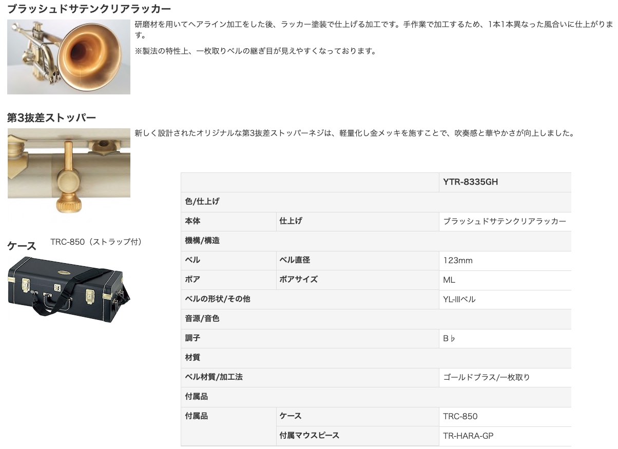・YTR-8335GH...(原朋直)ゴールドブラスベル、MLボア、ブラッシュドサテンクリアラッカー 仕上げ