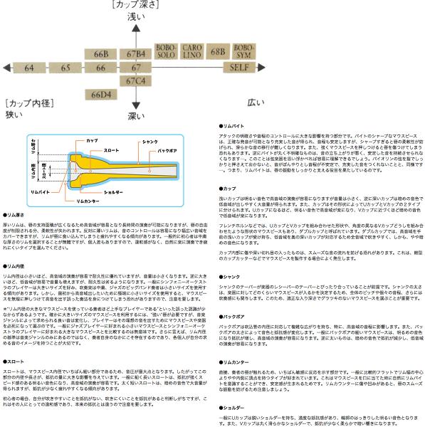 ■BB-67C4: Bb管やC管などに最適なモデルで,オールラウンドタイプ。ムラのない落ち着いた音で響き,豊かな大音量が得られる。