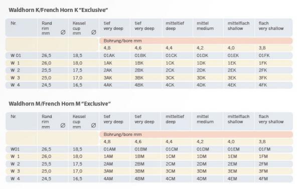 モデルナンバーが01、1、2、3、4とリム/カップの違いで5種類あり、それに対しスロートサイズが6種類あります。