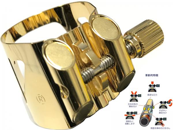 左右均一にリードを締めることができるので正確にかつ早くしっかりとセットできる重みのあるリガチャー。求める響きによって使い分けできる3種類のプレッシャープレートで色々な表現に対応します。