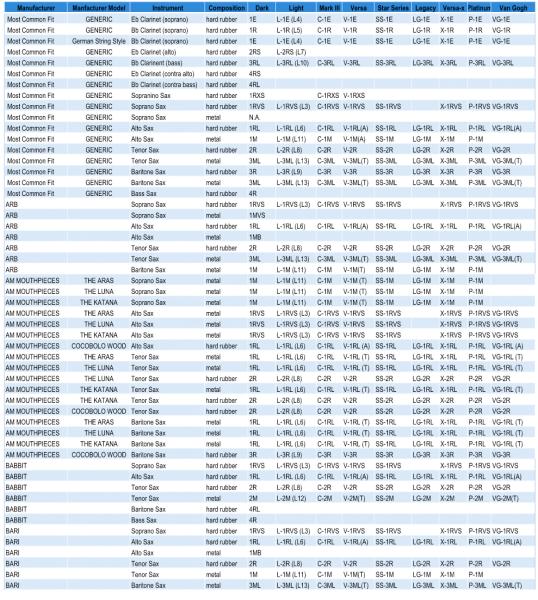 但し、海外サイトでも特定のマウスピースのいわゆるそのブランドの定番シリーズについては表にありますが全てのモデルの対応サイズが記載されてはおりませんし、