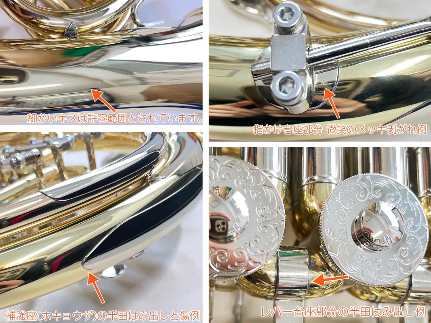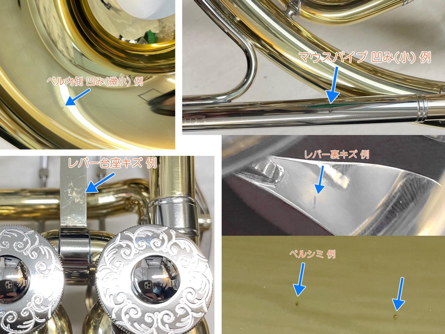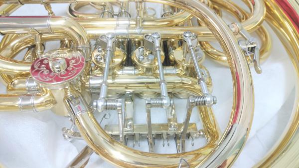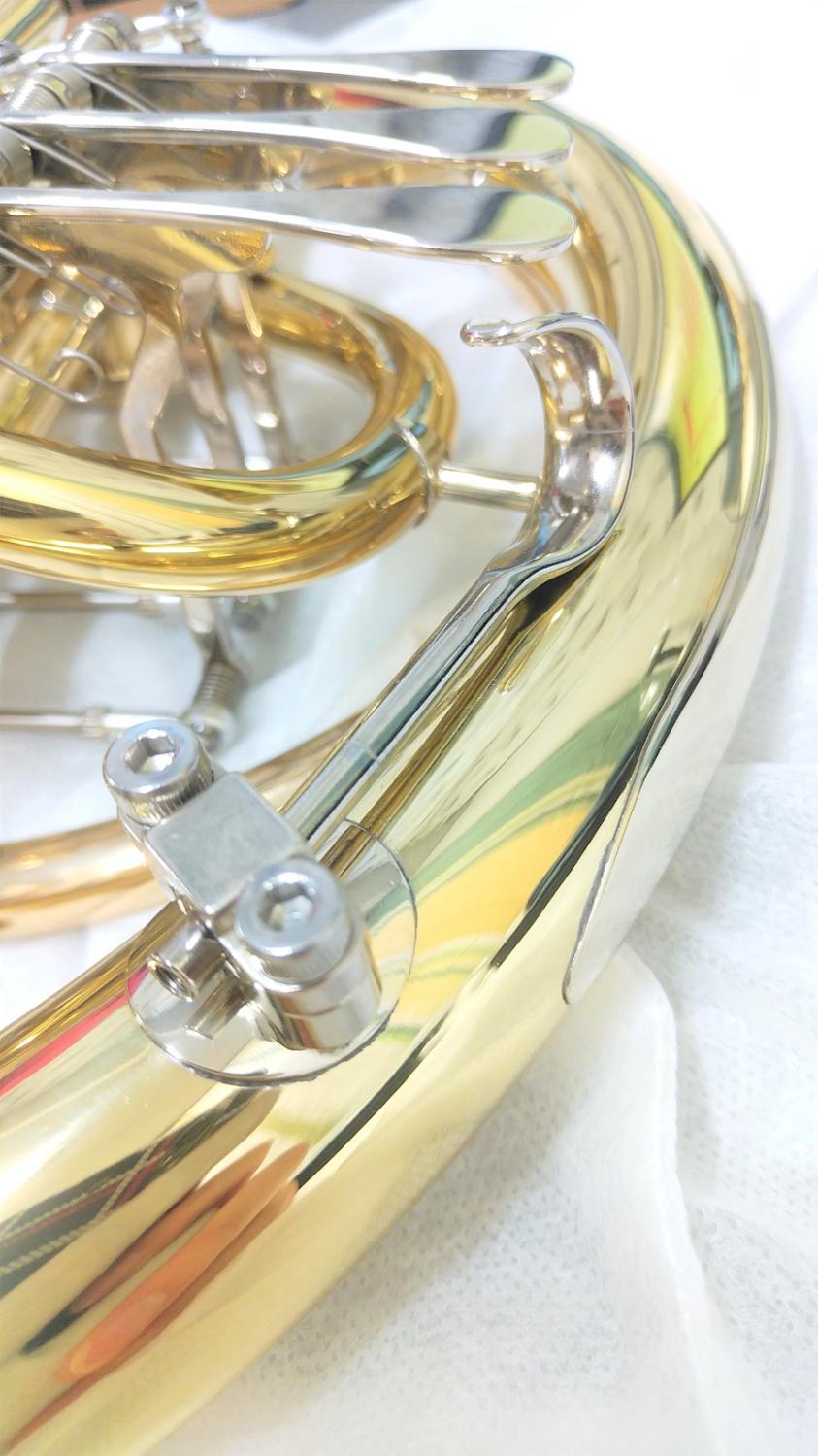 一般的な調整/押しFへの変更調整について フルダブルホルン(および一部のセミダブルホルン)は一般的に第4レバーを押してF管→B♭管に切り替える「押しB♭」での演奏が一般的ですが、こちらのモデルはその逆である「押しF」への変更が可能となっています。全くの初心者の方にはおすすめできませんが、変更を必要とされる方はB♭管を使って演奏することが多い方や手が小さい方が小指の負担軽減を目的とすることが多いです。初心者で手が小さい方はホルン用のプロテクターの使用も有効です。変更を行った場合でも譜読みやゲシュトップ、ミュートの使用時における影響は特に無く、第4レバー(親指)の運指のみが通常の逆となります。ただしこの運指に慣れるためには当然練習が必要になりますので、個人差はありますが数ヶ月かかる方もいらっしゃるようです。 押しFの状態でのお届けをご希望の場合はご注文時に備考欄にてお申し付け下さい。またお子様が使用される場合はレバーの高さを少し低めに調整することも可能です。(技術担当が不在の場合は調整に数日頂くことがございます。)取扱説明書にも記載がございますが、この調整は難易度が高く、お客様ご自身で行われると故障につながる可能性がありますので弊社までご依頼をお願い致します。※お届け後の調整等ご依頼につきましては別途往復送料のご負担をお願いしております。押しFへの変更/ロータリー動作チェックなど、出荷前調整と一緒でしたら無料にてご対応可能です。何かご希望などございましたらお申し付け下さいませ。