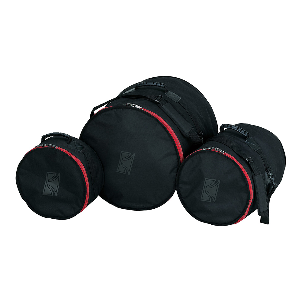 バッグ3枚がセットになったドラムバッグセット。3枚のバッグに10"スネアドラム、8"タムと10"フロア、そして14"バスドラムを収納可能です。