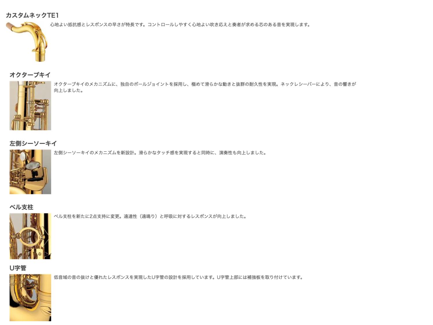 YTS-480、YTS-62から上のモデルはカスタムネックに付け替えることができます。より自分の好みの音、表現したい音に近づけるための選択肢が豊富です。