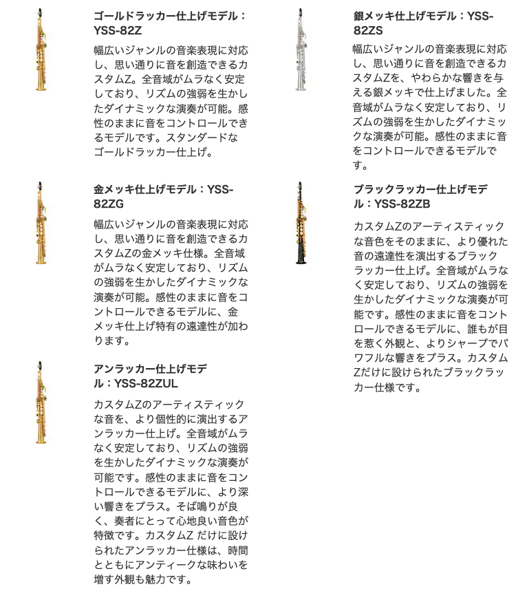 ・YSS-82ZB...イエローブラス製、ブラックラッカー仕上げ(キイはゴールドラッカー仕上げ)、ネック一体式(ストレート)