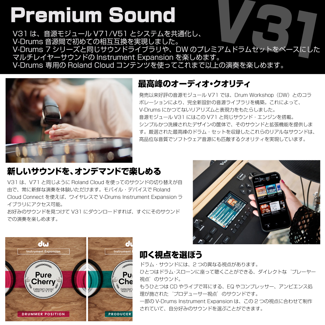 『V71』と同じサウンド・エンジンを持つ音源モジュール『V31』を搭載した新しいドラム・キット