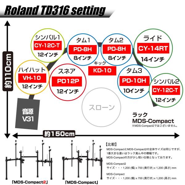 Roland ローランド アウトレット TD316 フルオプションセット Pearl シングル MDS-COM