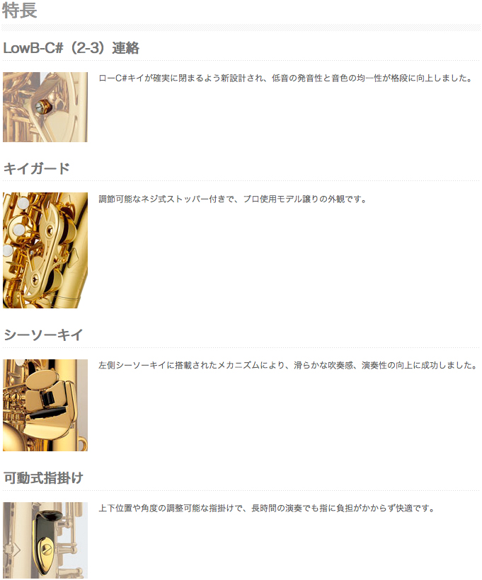 ▼ヤマハがなぜ吹奏楽におすすめか▼ ヤマハが大事にしていることは「奏者が音楽に集中できる楽器設計」「きちんと音程が取れる音程設計」「奏者が意図する音楽表現ができる楽器」「安心して長く使える楽器」。他メーカーも良さを認めるほど、クオリティは高く信頼のおけるものです。ただ、楽器を選ぶ上で必ずしもこの4つの項目は絶対条件ではないということ。また何故これらが重要なのか、まだ分からない方も多くおられると思います。 ※楽器には個性もあり、全てにおいてヤマハが優れているということではありません。ヤマハ低価格帯品でも上を目指しているということです。 ▼楽器の設計▼ 精度もそうですが値段の違いは仕様にもあります。初心者に吹きやすいキイ、レイアウトなどに工夫があるモデルは吹きやすく感じられます。少し吹けるように なってから効率性を感じる部分でもありますので初心者にはちょっと判断が難しいかもしれませんが「吹きやすい」というのは「音を出しやすい」ということだ けではなく、指がスムーズに動かせるかどうかということも関係します。同じ技量を持っているのに持つ楽器によって上手く演奏できる場合とできない場合があ るなんて少し残念ですよね。 ▼きちんと音程が取れるということ▼ 音程にシビアでなければ気づかないかもしれませんが、管楽器はいつでも同じ音程で音が鳴るとは限りません。気候や口の形、吹き方に大きく影響されます。吹奏 楽では大勢で綺麗なハーモニーを奏でるため日々正しい音程で音が出るよう特訓しています。チューナーを見ながら音を出し正しい音程になるように楽器と吹き 方で調整します。当然ヤマハだから常に正しい音程がでるということでもありませんが、全音域で均一な吹奏感と音程が出せるところを目指して製造しているヤ マハと、低価格帯の楽器では目指すところも異なりますので、ヤマハはより安定しているという結果が生まれるのだと思います。精度の悪い楽器を手にした場 合、演奏云々よりもピッチの安定に技量を使い「良い演奏」に集中できないということがあるかもしれません。 ▼奏者が意図する音楽表現ができる楽器▼ 品質の高い楽器は音質と音量の幅が 大きいですので奏者の意図する表現ができます。クオリティはともかくYTS-380をはじめ低価格帯の楽器は入れた息が音になりやすく吹きやすいことが重 視されています。しかし上級者にとって、これだけでは求める音質と音量は得ら れません。例えばとても小さな音を吹いた場合、ただ吹きやすい楽器では柔らかな小さな音のコントロールが難しいため段々と小さくできず、音がプツっと途切 れてしまった感じになったり、逆に大きい音を出すために息を沢山入れれば、楽器のキャパを越えてしまい綺麗な音色にならなければ意味がありません。肺活量 がコントロール できる上級者にとってはその息づかいがちゃんと表現できる精度の楽器が必要になります。入れた息をを跳ね返す力を抵抗といい、上級者にとっては適度な抵抗 感は大事なポイ ントです。高い楽器だから誰が吹いても良い音がでるわけではなく、良い音が鳴らせる可能性があるのです。 ▼安心して長く使える楽器▼ 長 く歴史のあるヤマハでは長期パーツの保持と万全のアフターサービス体制が整っています。但し、ヤマハだけに限らず管楽器のメーカー無料修理の範囲は決して 広くありません。精度が高い楽器は耐久性がよく毎日練習する方にとっては重要な点です。ヤマハでは特約店制度というのがあり、弊社はヤマハ特約店です。ヤ マハ管楽器はアフターサービスを必要とする楽器という考えで製造販売されています。保証書は必ず販売店を通して有効となり個人様が直接メーカーに修理をお願いすることは基本的にできません。ヤマハに限らず管楽器の故障においては殆どの場合が使用者の不備と され修理費用が発生しているのが現状です。それは、お手入れ・セッティングなど最低限の知識が必要になる楽器であること、また保管と使用状況によって状態 変化してしまうからです。使わず長く置いていても故障する可能性もあり、どんなに大事に使っていても気づかないうちに壊してしまうこともあるので す。 ▼調整について▼ 管 楽器はしっかりと調整されていないと音程感が悪かったり音がならしにくいことがあります。1箇所に手を入れると全体のバランスが崩れるのですが、高い楽器 は調整の幅が広く、崩れたバランスを立て直すため他の箇所へも十分に手を入れることができます。保管期間によっても楽器の状態は変化しますので弊社では無 駄な作り置きはしておりません。ほとんどの場合が出荷日もしくは前日に調整を施しています。調整内容などのご希望がございましたらお気軽にご相談下さいませ。