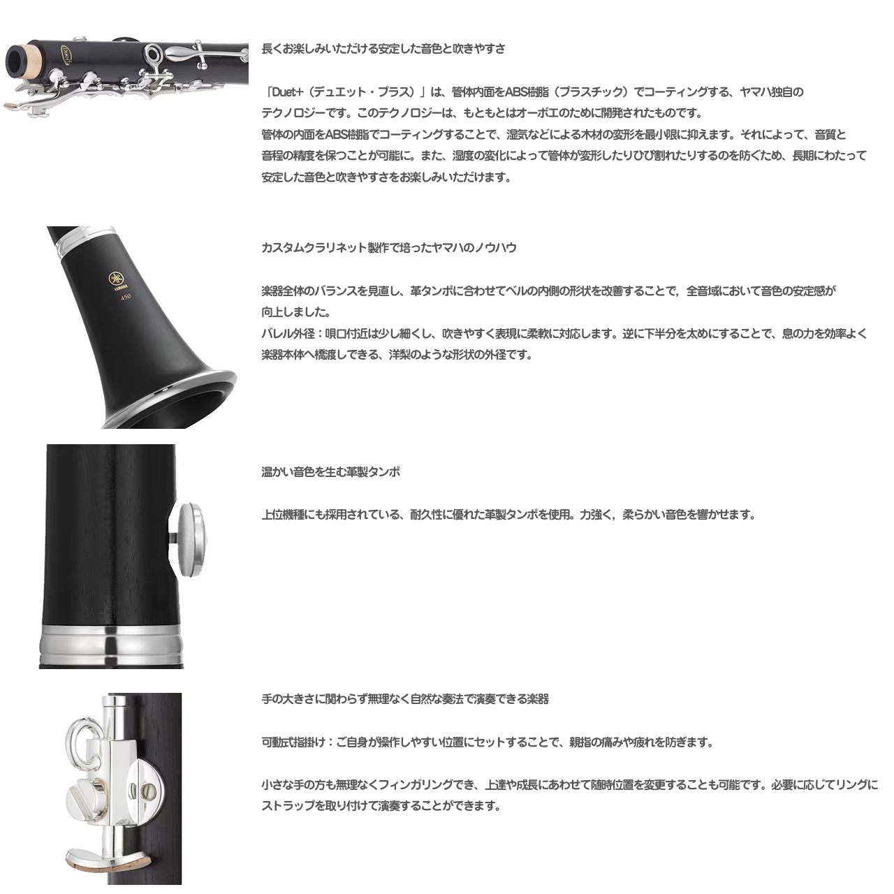 「Duet+(デュエット・プラス)」は、管体内面をABS樹脂(プラスチック)でコーティングする、ヤマハ独自のテクノロジー。
