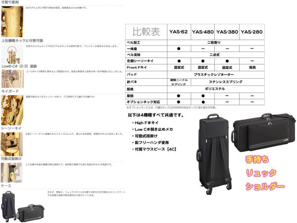 ※YAS-62(S)/YTS-62(S)は2021年11月時点の現行モデルおよび一部の旧モデルに互換性があります。