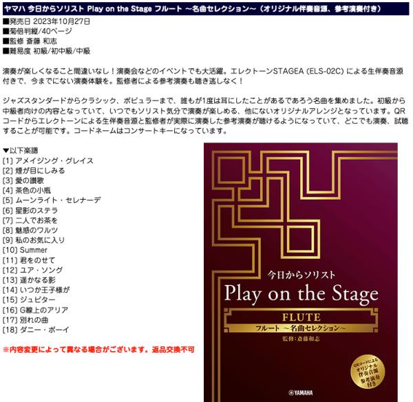 ■ヤマハ楽譜 今日からソリスト Play on the Stage フルート 名曲セレクション オリジナル伴奏音源 参考演奏付き