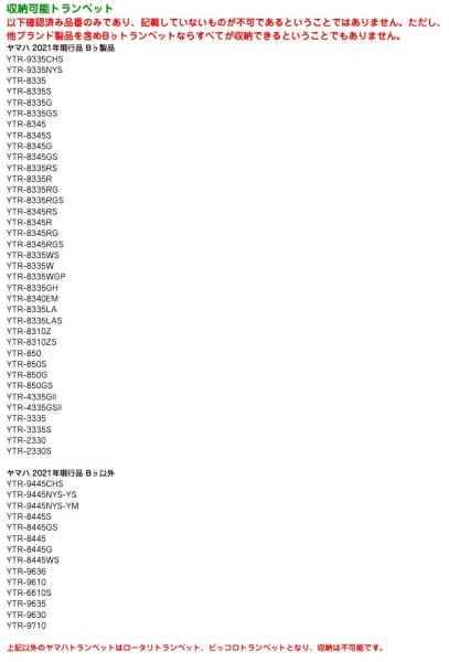 上記以外のヤマハトランペットはロータリトランペット、ピッコロトランペットとなり、収納は不可能です。