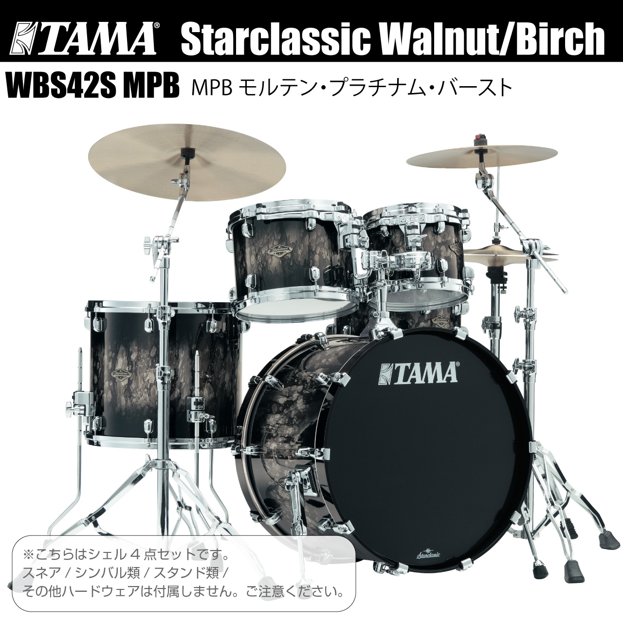 TAMA タマ Starclassic Walnut/Birch Drum Kits WBS42S-MPB シェルセットしっかりとした存在感を示しつつも、音の分離を明確にすることで、プレイヤーの表現を的確に周りに伝えることができるドラムサウンド!