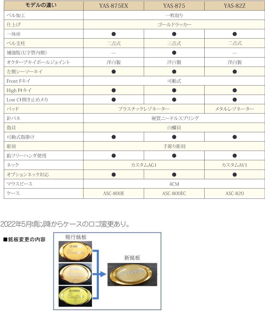 ・YAS-875S...イエローブラス製、銀メッキ仕上げ、G1ネック