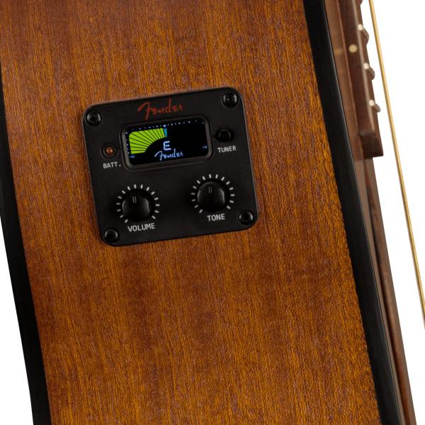 オールラミネートのサペリ材を使用したMonterey Standardの快適なミッドサイズコンサートボディは、深く豊かな木目が特徴で、様々な演奏スタイルに適した温かくバランスのとれた音色を奏でます。弾きやすいナトーネックは、スリムなCシェイプで指板エッジは丁寧なロールオフ加工を施しているため弾き心地が良く、弦のテンションが低い24.75インチのショートスケール、6インラインヘッドストックなど、70年代のフェンダーエレキギターのDNAから生まれた独特のルックスを継承しています。ブリッジの弦間は狭く、手の小さい方やピッキング時の疲労を軽減したい方に最適なモデルです。また、シルキーなサテンウレタンフィニッシュ、スムーズで正確なチューニングを可能にするヴィンテージスタイルのチューニングマシン、繊細なハーモニクスを生み出すGraphTech® NuBone®ナットとサドルなど、細部にまでこだわりが詰まっています。さらに、アンプやレコーディング機器に接続した際に、ギター本来のサウンドを忠実に再現するFender®プリアンプシステムを搭載し、その場でチューニングを行えるチューナーも内蔵しています。