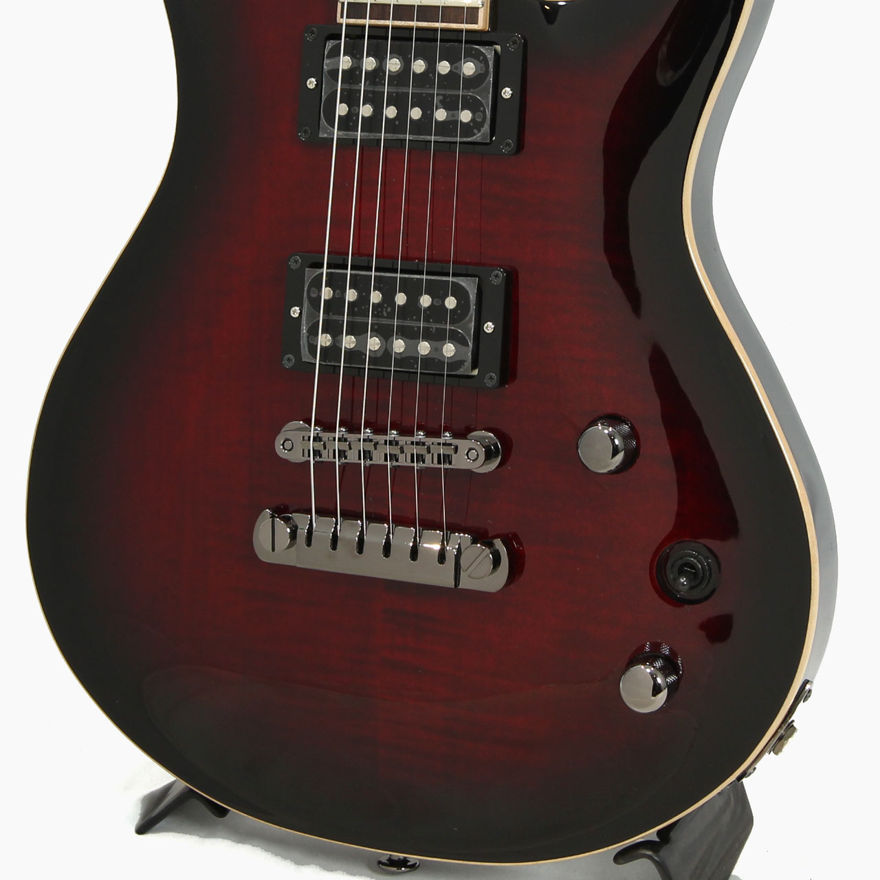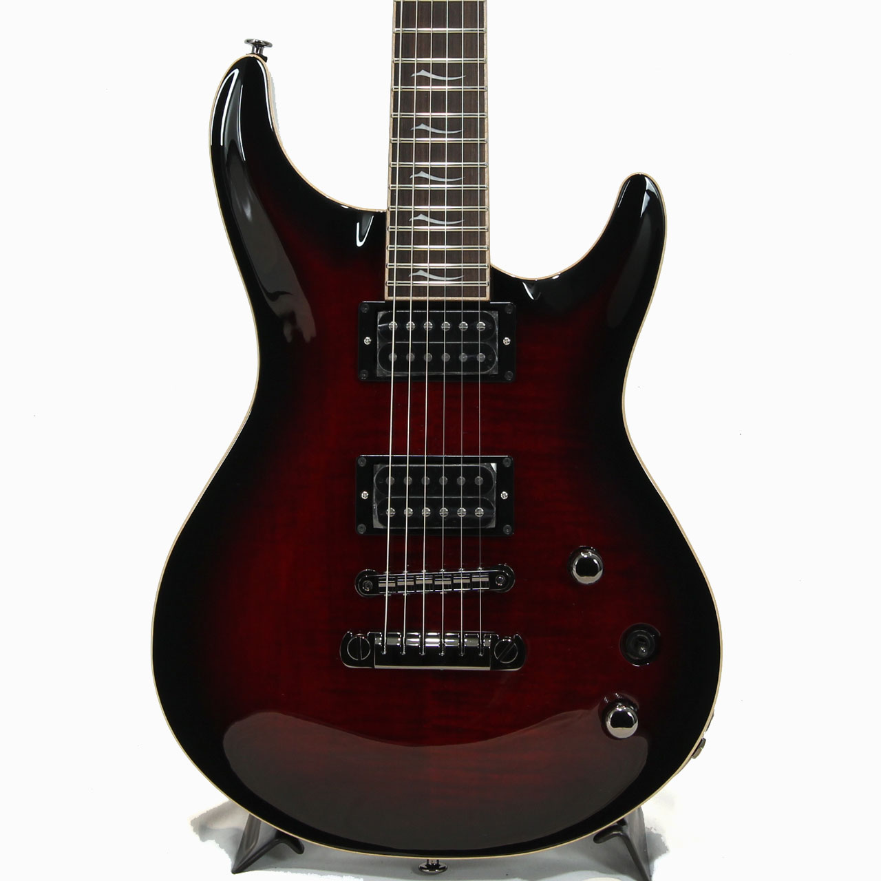 フレイムメイプルトップ、マホガニーバックボディにローズウッド指板の王道仕様に剛性のあるメイプル/ウォルナットの5ピース構成とすることでヘヴィかつレンジあるサウンドを演出してくれます。弦を裏通しにもすることができるのでダウンチューニング時も安定したテンション感を確保してくれます。こういった充分な対応力が幅広いユーザーの愛用に繋がっております。