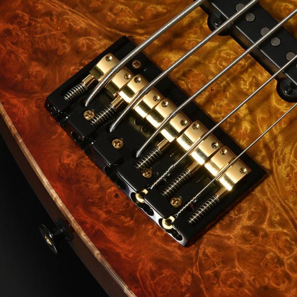指板に用いられた「ブラッドウッド」は赤褐色の色味を持つ木材で、アタック感のあるキレの良いサウンドを生み出します。本モデルではネックのメイプル材を反りやねじれに強い「柾目(まさめ)」で製材することで、安定感抜群の演奏性と末長く愛用いただける仕様を実現しています。