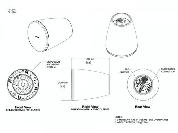 ・製品寸法(エンクロージャー直径 × 奥行き) :207 × 248 mm