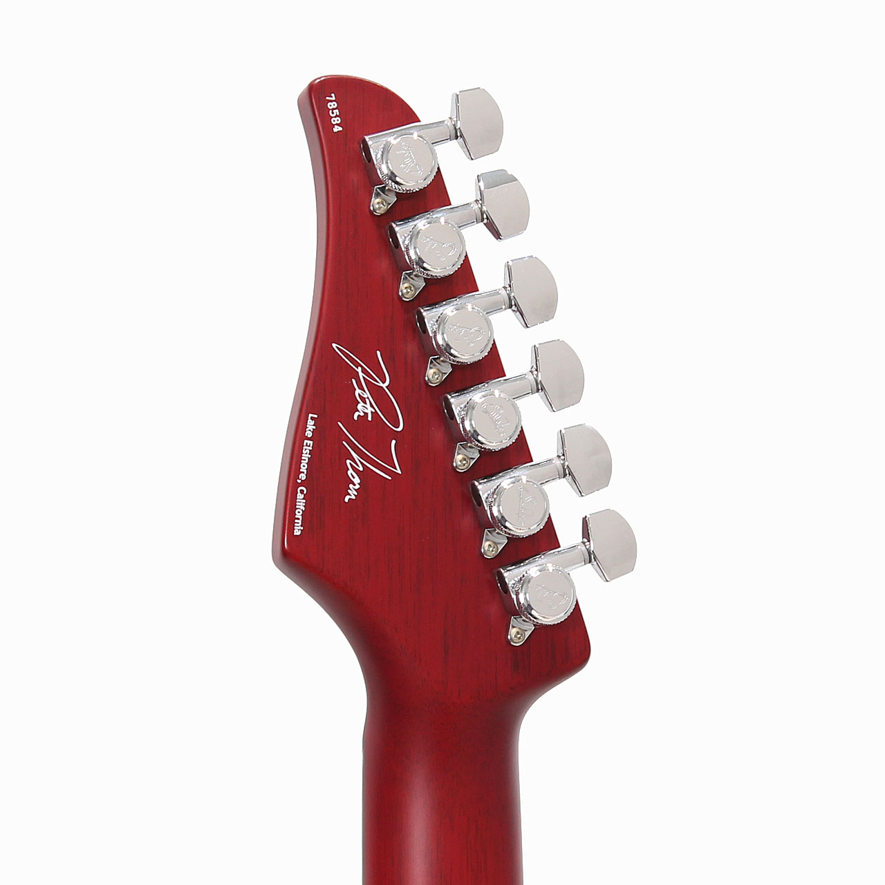 この PETE THORN SIGNATURE GUITAR は Pete がここ数年間のスタジオワークやツアーで広範囲にわたって使用しているカスタムスペックの Suhr Standard を基に、Thornbucker ピックアップと、素早く快適なフィンガリングが可能な Even C Slim ネックを採用しています。