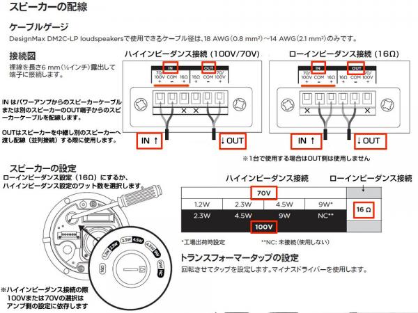 ( 70V伝送時:1.2W/2.3W/4.5W/9W、100V伝送時:2.3W/4.5W/9W )