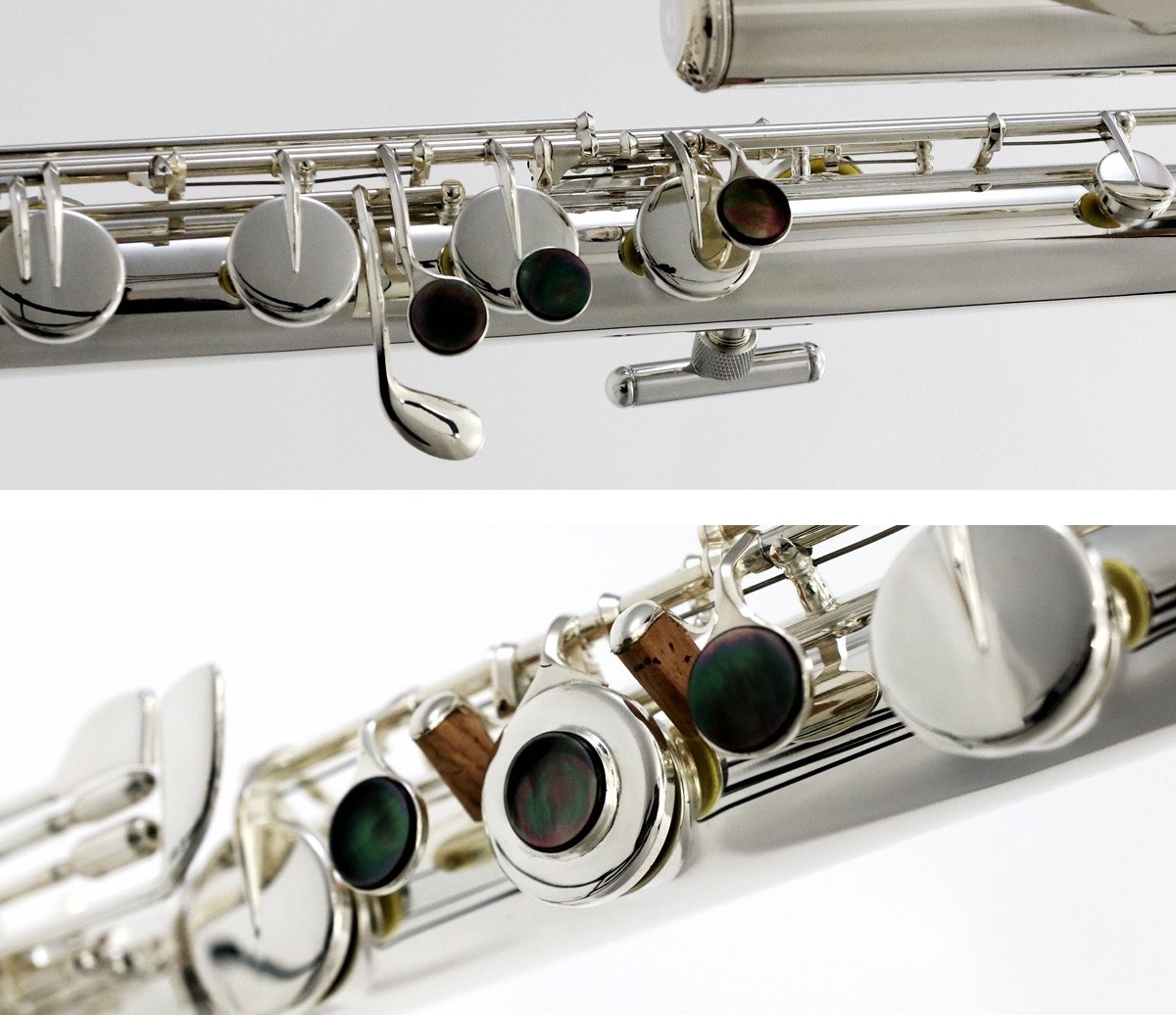 ▼足部管の違い PFB-305BEはH足部管です。 ・C足部管...最低音が「ド」まで。こちらの方が一般的です。 ・H足部管...さらに下の「シ」の音までが演奏できる。H足部管は管体が長くなり、ダークで艶のある音色が特長。曲によって必要になることもあります。