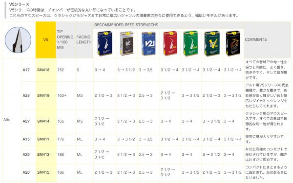 vandoren V5 series normal A17 alto saxophone mouthpieces バンドーレン アルトサクソフォン用 マウスピース SM-418