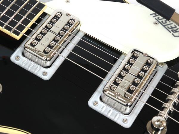 1959年のDUO JETをリイシューしたモデルとは言えブリッジはピンブリッジを採用するなどより実践的なスペックも取り入れています。ブラックボディにビグスビー搭載でグレッチならではのロックンロールなルックス。