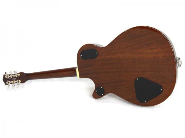 メイプルトップのマホガニーのチェンバードボディにTVジョーンズのフィルタートロンクラシックピックアップを搭載。ビンテージ感が有りながらパワフルなサウンドをアウトプットします。