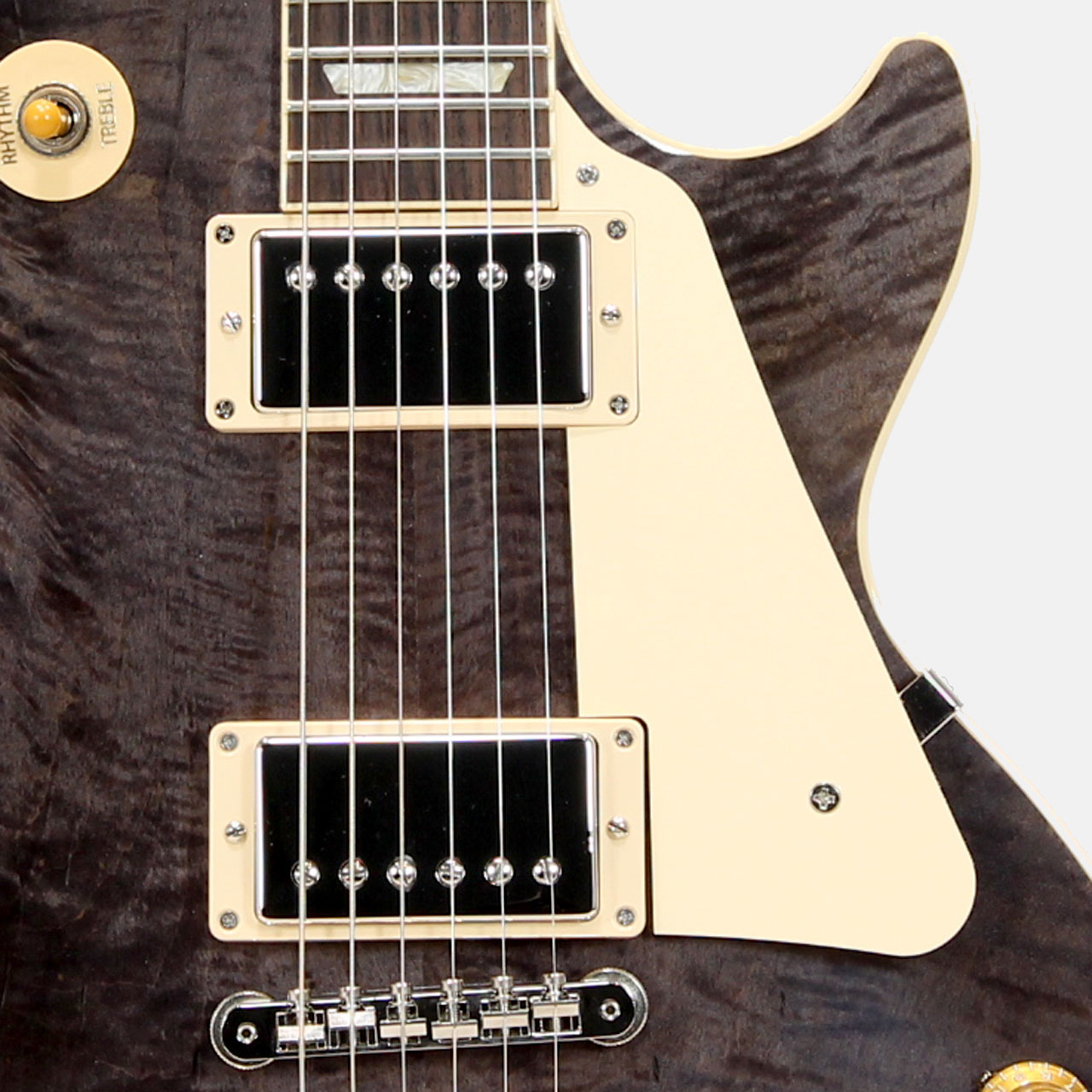 ピックアップにはキャリブレートされたBurstbucker 1&2を搭載しレスポールならではの甘く重厚なトーンを生み出してくれます。歪みでは分厚さの中に輪郭がしっかりあるサウンド。ラウドな歪みにもぶれないボトムは雑味を残さない粘りとソリッドさを持ち合わせています。