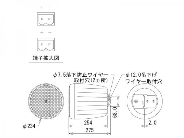 ・吊下げワイヤー・キット×2、2ピン・ユーロブロックコネクター×4、端子カバー×4、和文取扱説明書 |