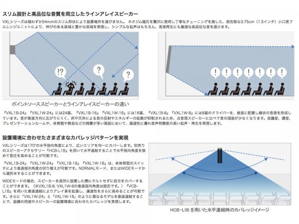 VXLシリーズはスリムなデザインと高品位で明瞭度の高い拡声・再生を実現したラインアレイスピーカーです。