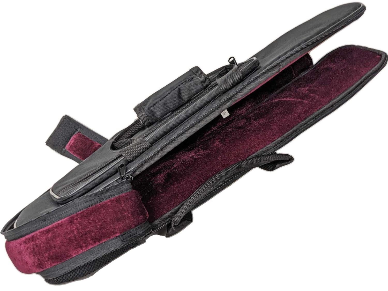 ハードケースやセミハードケースなどのように型抜きがされていないタイプです。 キーが多い楽器ですのでハードなタイプはサイズが違うと入らないですが、バッグのようなものですので細かい部分の形状を気にせず収納の柔軟性は高い方です。