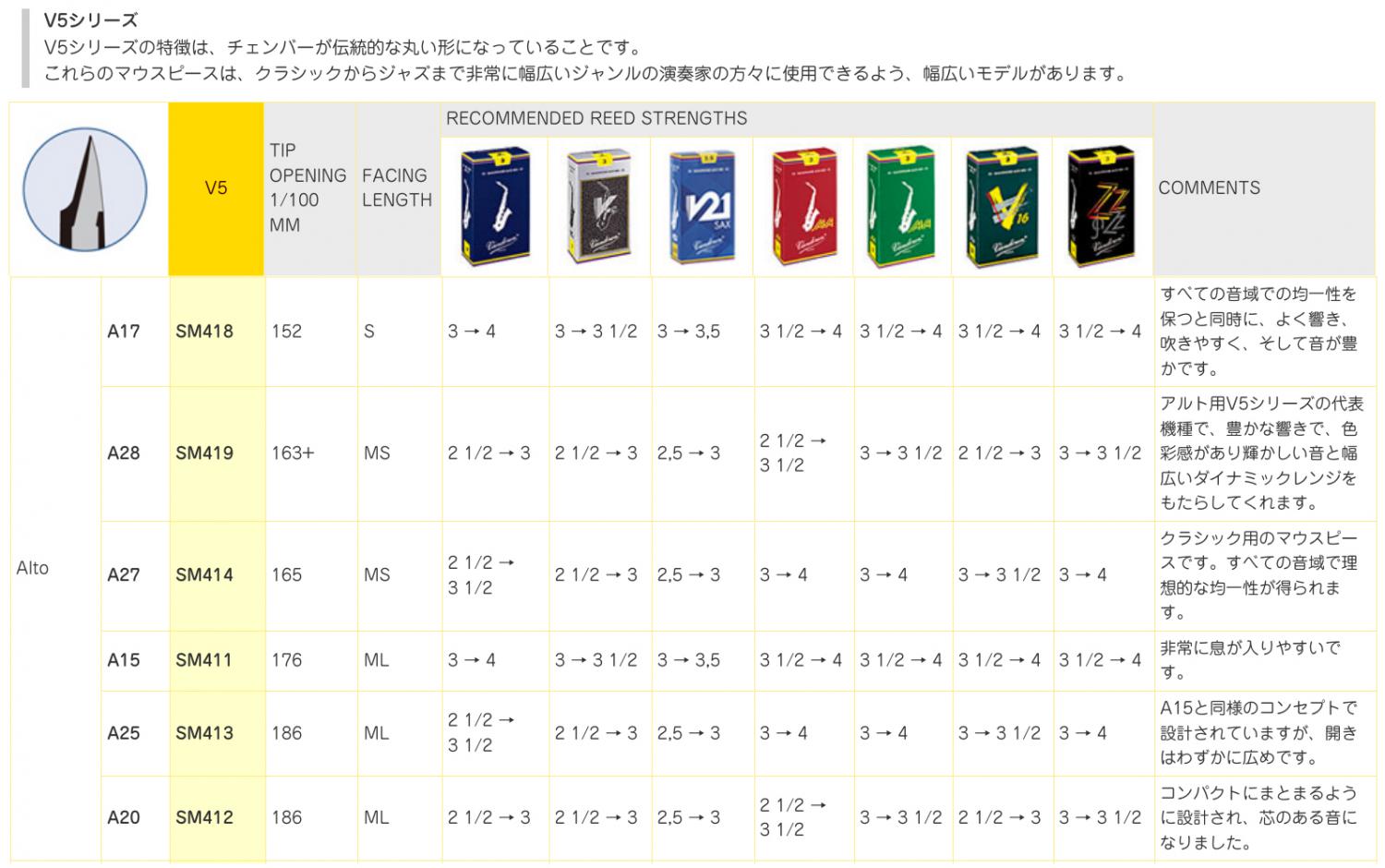 vandoren V5 series normal A25 alto saxophone mouthpieces バンドーレン アルトサクソフォン用 マウスピース SM-413