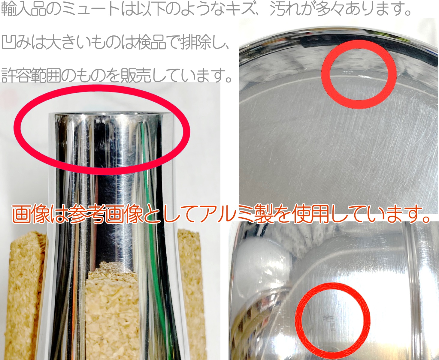 個体差によって問題のないものもございますが、演奏に問題のないレベルのキズ、凹みにおいては返品交換の対象にはなりませんのでご理解のうえご購入をお願いします。