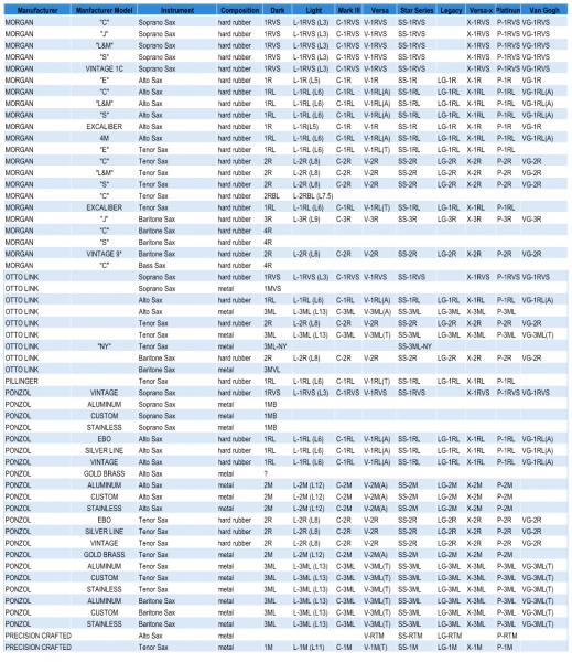 ■リガチャー、キャップ ※上記のメーカーでもモデルによって異なります。対応表を参考としてご確認下さい。装着できないなどの返品/交換は一切できません。細かい仕様が画像と変わる場合がございます。