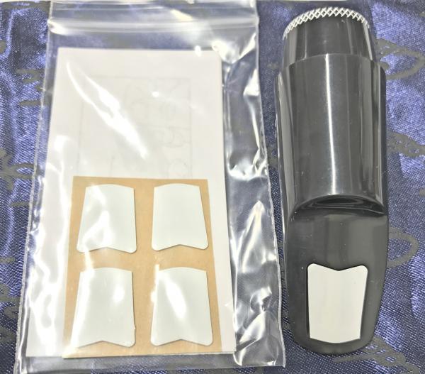 アメリカ製のジャズ系マウスピース。マウスピースパッチが元々セッティングされており、またパッチの貼る部分にはパッチの厚さに合わせて型抜きされています。ですので、専用のパッチを貼るか、もしくはお好みのパッチをその形に切って貼るかになるのですが、パッチの分の厚みを比較的感じにくいというメリットがあります。別売りで4枚のパッチが販売されていますが、付属は元々貼られているものとは別に4枚のパッチが同梱されています。マウスピースポーチ(巾着)も付属。