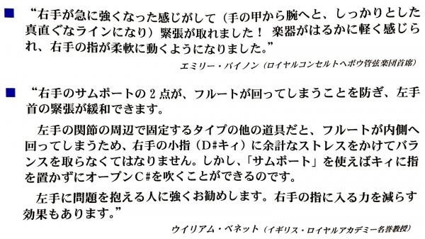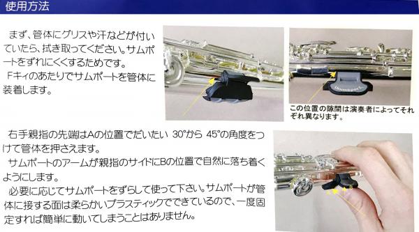 フルートの安定のために右手の親指が正しく機能するようサポートする器具です。