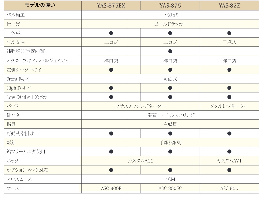 ・YAS-875S...イエローブラス製、銀メッキ仕上げ、G1ネック