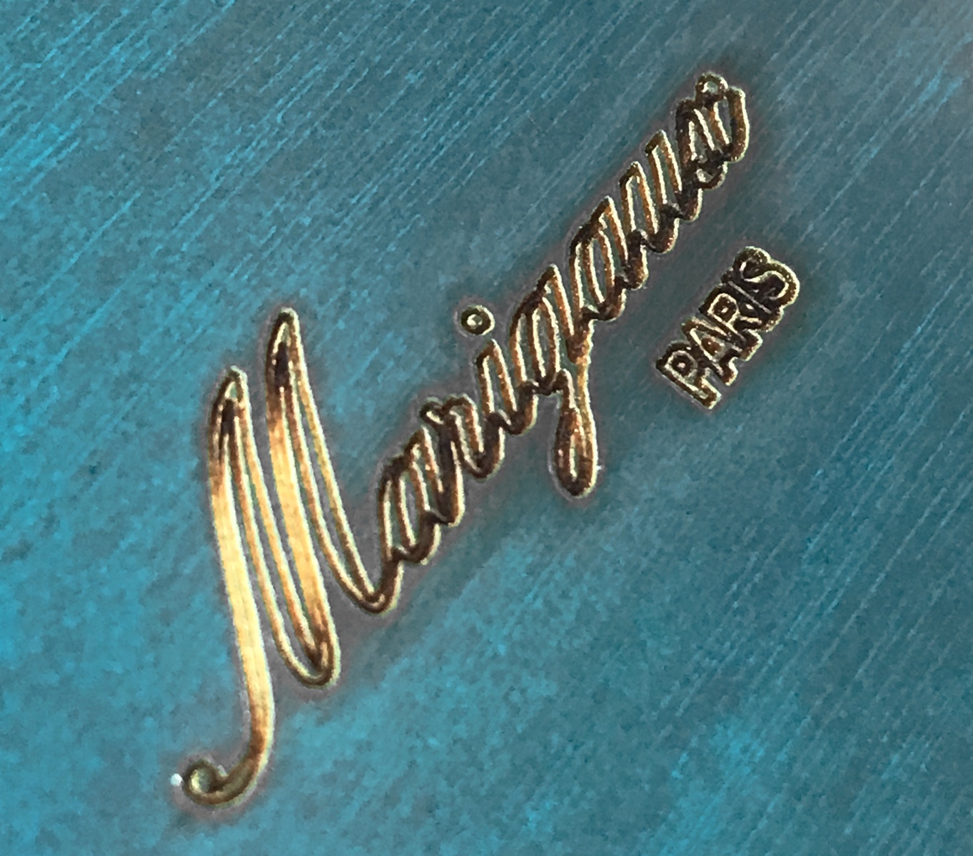 ダックブルーに木の色(黄み)が入った色になっています。