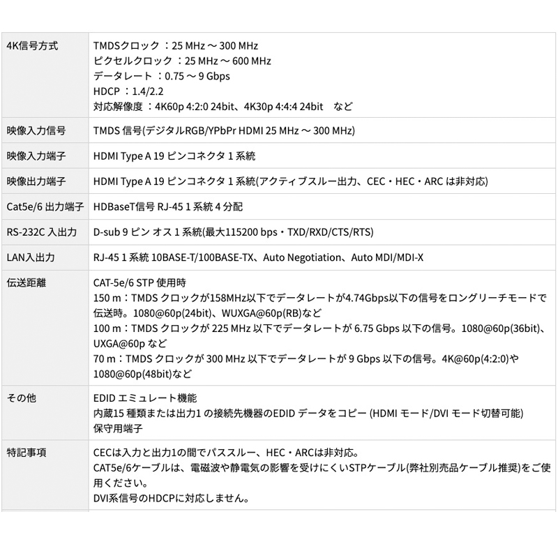 ※HDBaseT(TM)およびHDBaseT Allianceロゴは、HDBaseT Allianceの登録商標です。