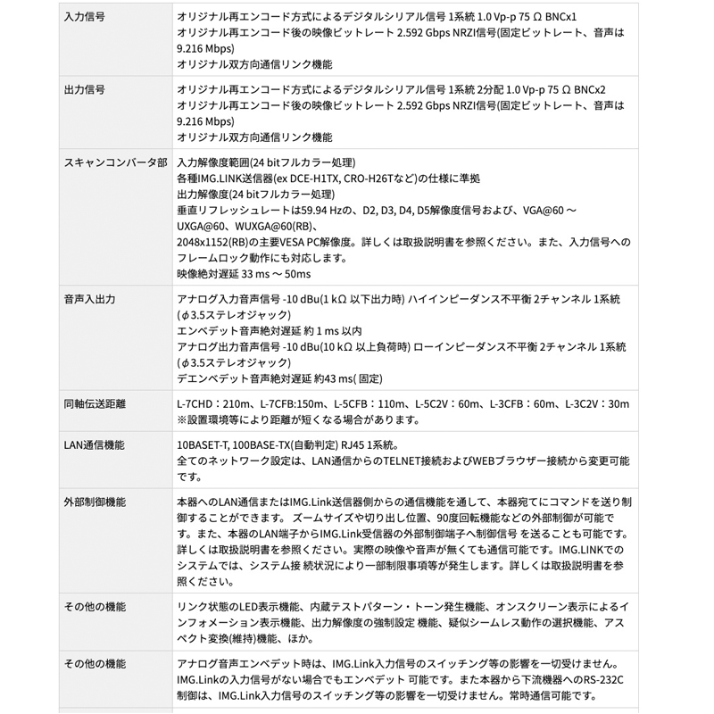 ◆外部制御用にLAN機能を実装しており、本器の上下流側のIMG.Link受信器へRS-232C制御信号として送受信制御もできます。上流の送受信器とは設定変更、制約があります。詳しくは取扱説明書をご覧下さい)