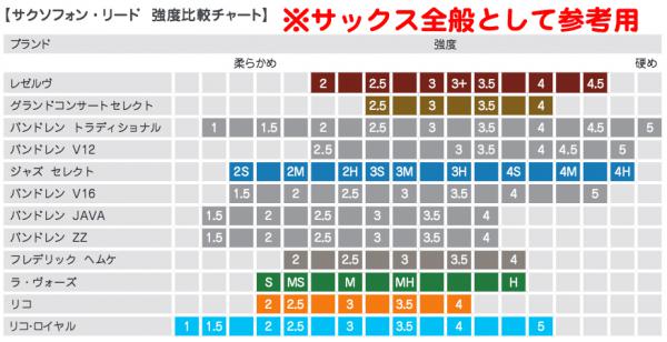 ・Grand Concert Select(グランドコンサートセレクト):世界のトップ・プロ奏者の協力を得てクラシック/吹奏楽向けに開発されたリードです。安定した品質でコストパフォーマンスに優れています。ハート部分を厚くすることによって、よく響く、柔らかい、透明感のある音色を生み出し、すべての音域で、ピアニッシモからフォルティッシモまで均一で安定したサウンドを実現します。また、この斬新なカットが柔軟性を高め、アーティキュレーションや音程の切り替えを正確に行うことができます。グランド・コン サート・セレクトのリードは、ばらつきが少なく、これまでにない耐久性を備えています。